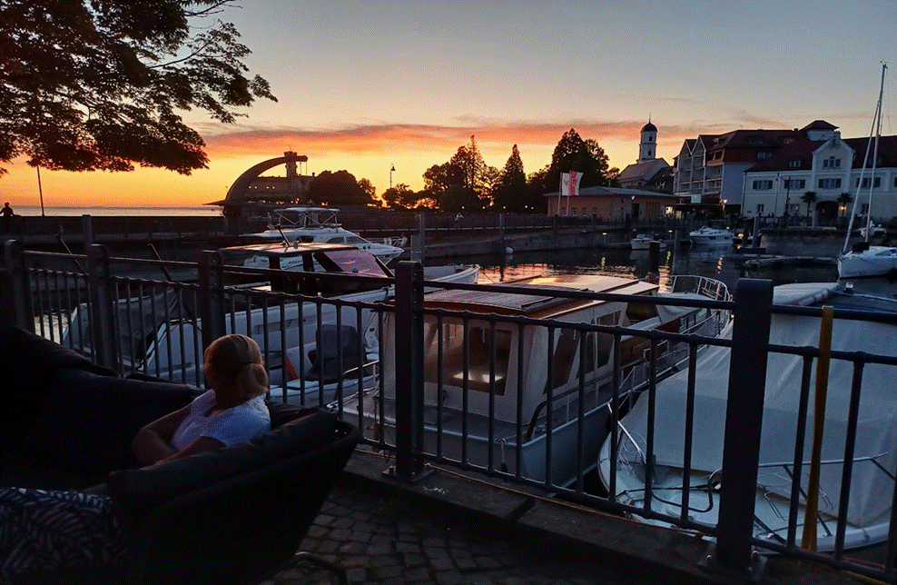 Da in Langenargen fast immer die Sonne scheint, wird der überdachte „Frühstücksbalkon“ gern und häufig in Anspruch genommen!